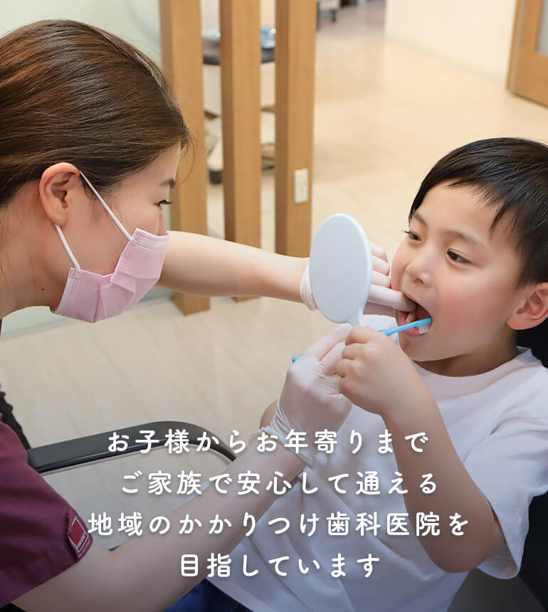 虫歯や歯周病の予防・治療をはじめ、小児歯科、入れ歯・インプラント治療、審美歯科治療、ホワイトニング、口腔外科に対応しておりますので、どのようなお口のお悩みでも、安心してご相談いただけます。